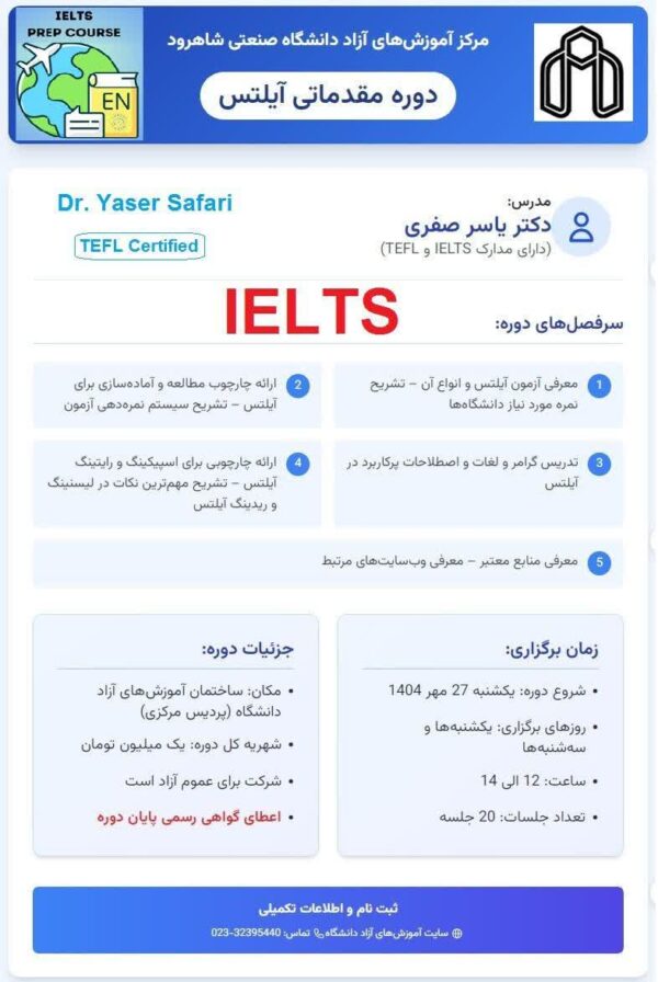 دوره مقدماتی آیلتس (حضوری)